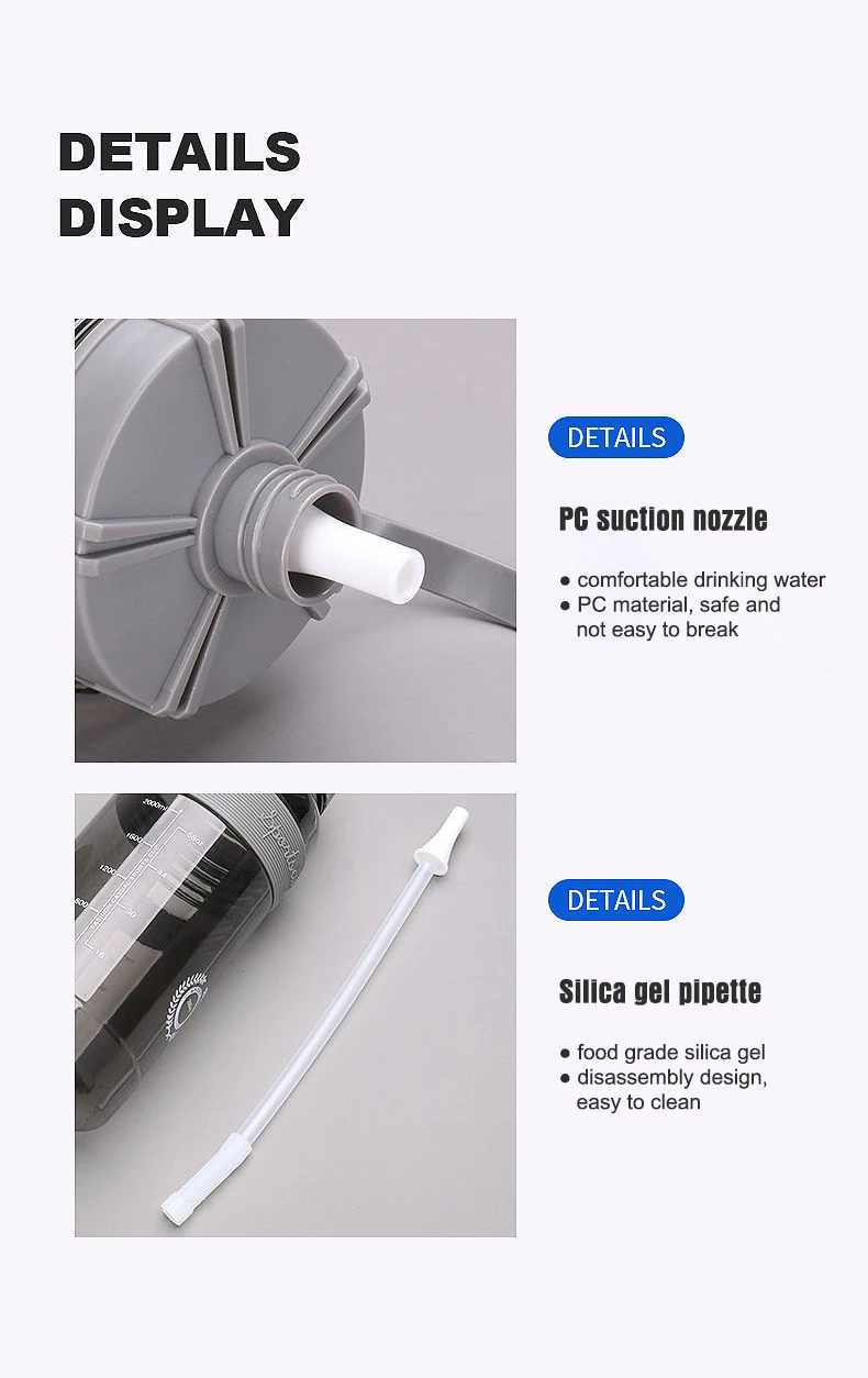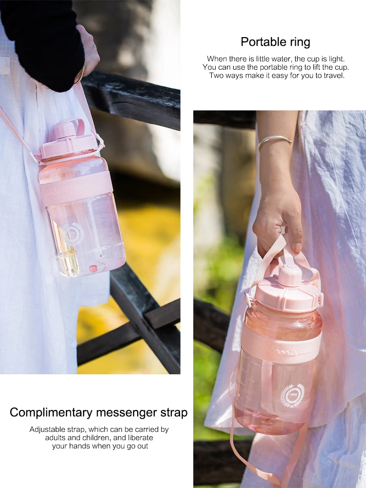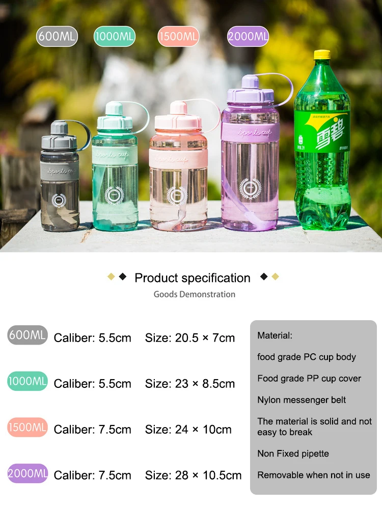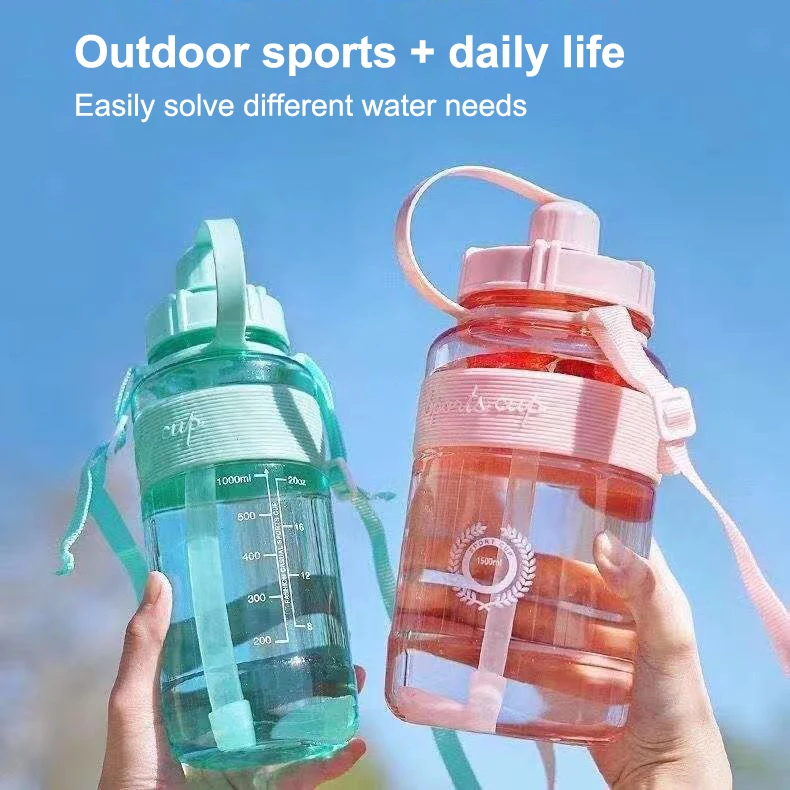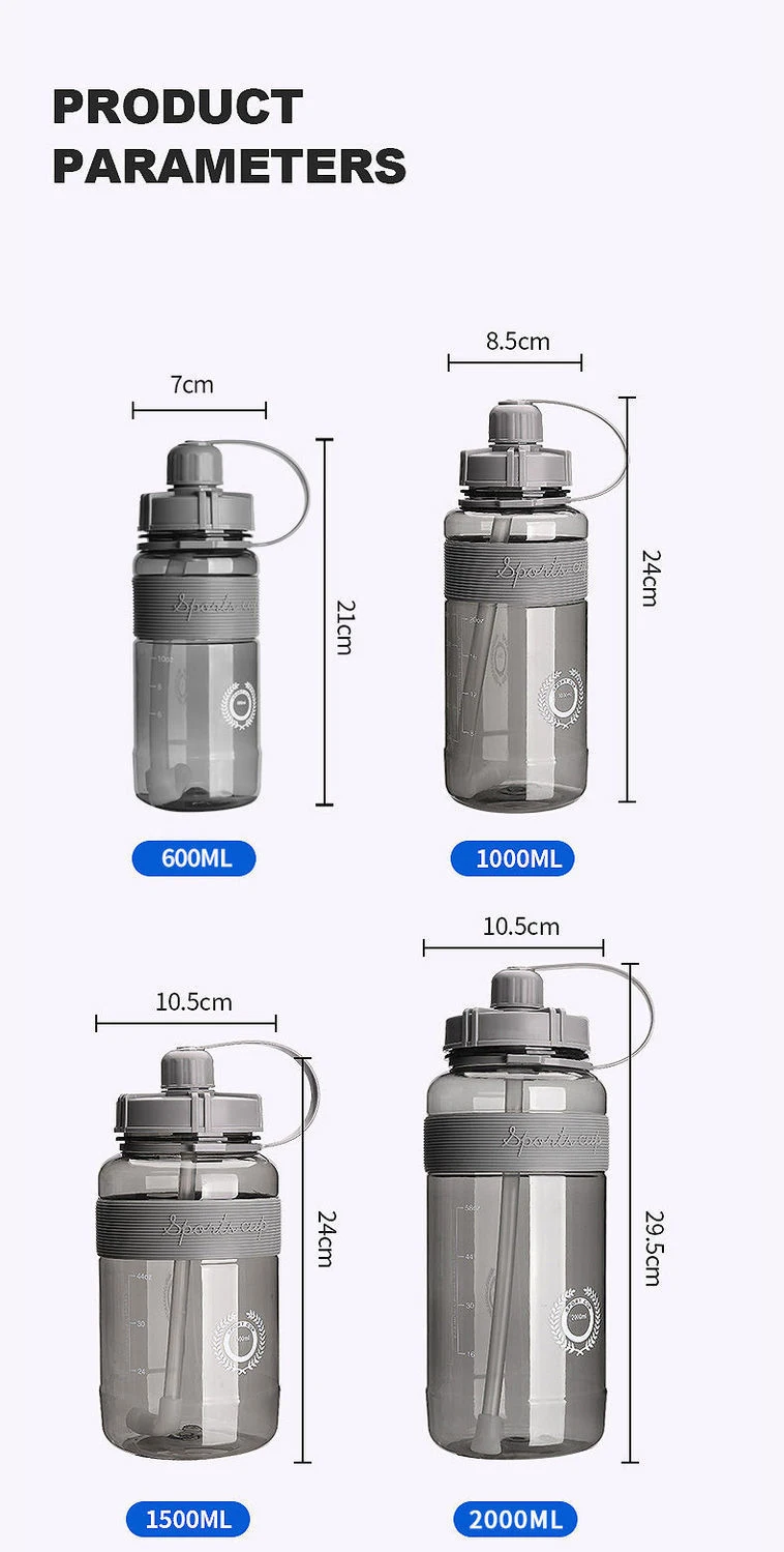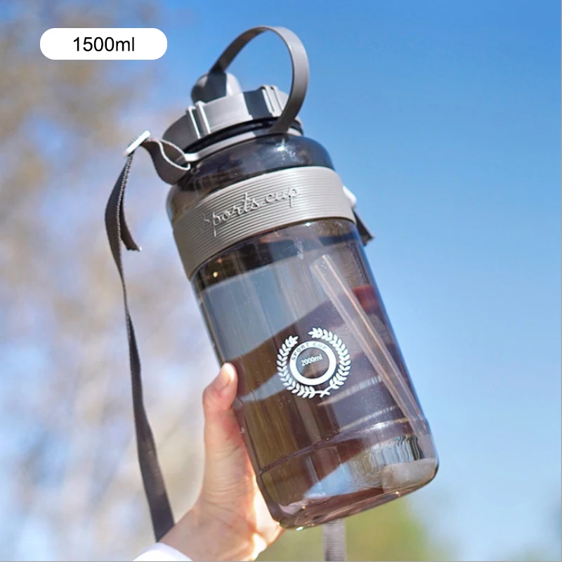 600/1000/1500/2000ml Large Travel Bottles Adult General Plastic Water Cup Water Bottle Outdoor Sports Drink Set Large Capacity