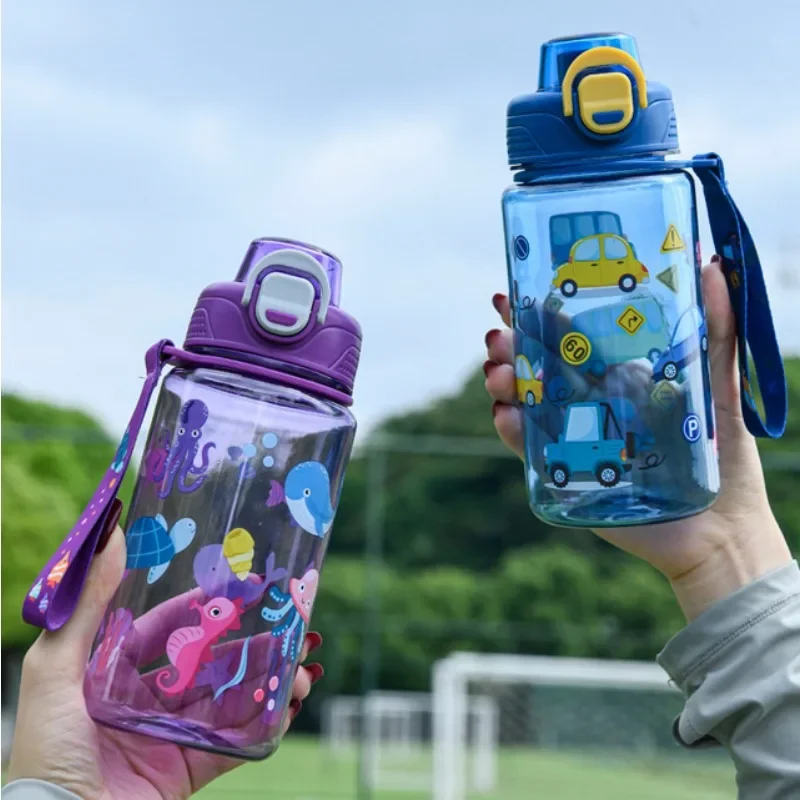600ML Children's Water Bottle for Summer Student Drinking Bottle Plastic Sports Water Bottle Portable Anti-fall and Leak Proof