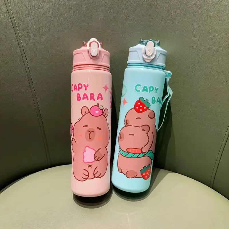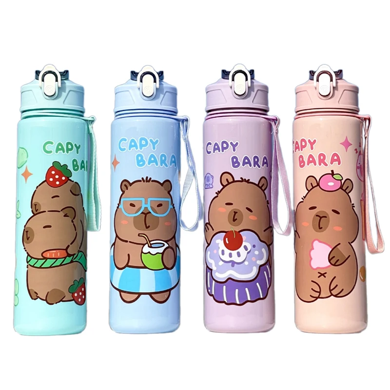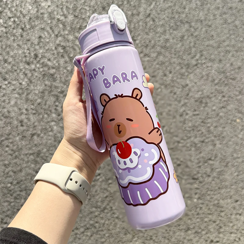 800ml Cartoon Capybara Water Bottle Plastic Water Cup Portable Large Capacity with Straw Sports Water Bottle Travel Outdoor